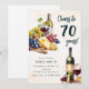 Celebre 7 décadas de vida com elegância com nossos convites de aniversário de 70 anos com charcutaria de queijos e vinho modernos. Perfeitamente projetados para ele ou ela, e um sucesso entre os conhecedores de vinho e queijo. Estes convites com modelo moderno exibem imagens divertidas de aquarela de uma tábua de queijos e vinho, estabelecendo o tom certo para a celebração requintada que está por vir.