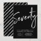 Celebre seu dia especial com este convite de aniversário de 70 anos simples e elegante. Este design apresenta uma escrita "Setenta" em estilo pincel com um layout limpo na combinação de cores preto e branco. Mais designs disponíveis na minha loja BaraBomDesign.