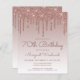 Este convite de aniversário de 70 anos apresenta uma borda de brilho falso rosa dourado cintilante e fundo ombre. As palavras "Aniversário de 70 Anos" e o nome do homenageado aparecem em escrita à mão casual de cor rosa escura, com o restante do texto personalizável em fonte sans serif. O mesmo design de brilho rosa dourado aparece no verso.