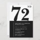 Convites de aniversário de 72 anos Chic Preto e Branco Elegantes