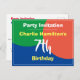 convite para uma festa de aniversário especial com nome e número de anos. Cartão postal de convite de festa para uma criança de 7 anos