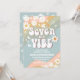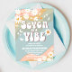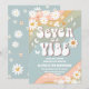 Celebre com um estilo retrô com este convite de aniversário arco-íris retrô, apresentando listras pastéis, margaridas, sinais de paz, borboletas e destaques de sorriso. Perfeito para festas infantis, este design colorido combina vibrações nostálgicas de poder das flores com charme moderno para criar um souvenir divertido e memorável. Personalize com o nome da sua criança, detalhes da festa e informações de RSVP para torná-lo exclusivamente seu. Ideal para uma celebração de 7º aniversário, este cartão divertido define o tom para paz, amor e diversão.