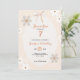 Torne o 7º aniversário da sua menina verdadeiramente especial com nosso encantador convite de aniversário floral de margaridas. Perfeito para uma celebração de festa de aniversário caprichosa, este convite editável captura a essência de um tema floral, tornando-o ideal para uma festa infantil no jardim. Com um design encantador com flores de margarida e um laço cor de pêssego, ele define o tom perfeito para sua reunião. Celebre este aniversário com estilo. Personalize o texto, as cores, as fontes como quiser, basta clicar <<edit this design>>.