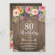 Convite de Aniversário de 80 Anos para Mulheres Floral Rústico. Flor Floral Aquarela, Fundo de Madeira Rústica. Vintage Retro. Aniversário de Adulto. Convite de Festa de Aniversário para Mulheres Meninas Senhoras Adolescentes. 13º 15º 16º 18º 20º 21º 30º 40º 50º 60º 70º 80º 90º 100º. Qualquer Idade. Para personalização adicional, clique no botão "Personalize" e use nossa ferramenta de design para modificar este modelo.