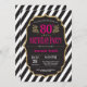 80 Aniversário Convite para mulheres. Dourado e preto cor-de-rosa convidam a Festa de aniversário. Dourada Glitter. Flor Floral Rosa. Black and White Stripes. Digital Imprimível. Para mais personalização, clique no botão "Personalizar" e use nossa ferramenta de design para modificar este modelo.