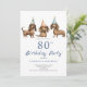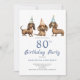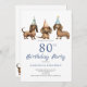 Convite de aniversário de 80 de cão de dachshund bonito. Fácil de mudar o texto. design de aquarela bonito.