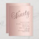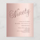 Um convite moderno e elegante para uma festa de 90 anos. Fundo gradiente dourado rosa e a palavra Noventa escrita com letras grandes e elegantes em dourado rosa escuro. Personalize e adicione um nome e detalhes da festa.