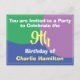 Convite para uma festa de aniversário especial com nome e número de anos. Convite de festa para uma criança de 9 anos. Adicione seus próprios detalhes.