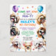 Convites de Aniversário de Cachorro. 9 anos de idade (ou mude para qualquer idade). Para menino ou menina. Convite de ilustração de cachorro feliz e sorridente, projetado com confetes e balões cercados por raças de cães pequenos populares, como shih tzu, pug, maltese, chihuahua, poodle e beagle. Todo o texto é editável com o nome da criança, idade, horário da festa, endereço e RSVP.
