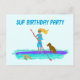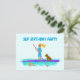 Convite de aniversário de adolescente em cartão-postal com tema de paddleboarding. O design ilustrado mostra uma garota remando sua prancha com seu cachorro a bordo, enquanto uma tartaruga marinha nada ao lado. Personalize o texto do modelo na frente e no verso para uma festa de encontro.