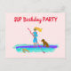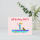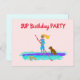 Convite de aniversário de adolescente com tema de paddleboarding em pé. O design ilustrado mostra uma garota remando sua prancha com seu cachorro a bordo, enquanto uma tartaruga marinha nada ao lado. Personalize o texto do modelo na frente e no verso para uma festa de confraternização. O endereço de envio pode ser adicionado separadamente a cada convite de festa.