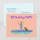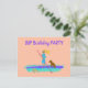 Convite de aniversário de adolescente em cartão-postal com tema de standup paddle boarding. O design ilustrado mostra uma garota remando sua prancha com seu cachorro a bordo, enquanto uma tartaruga marinha nada ao lado. Personalize o texto do modelo na frente e no verso para uma festa de encontro. O endereço de envio pode ser adicionado separadamente a cada convite de festa.