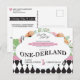 Ouça, ouça! Convide toda a sua família e amigos para a festa de primeiro aniversário temática de Alice no País das Maravilhas com esses divertidos convites de cartão postal de aniversário. Apresenta designs florais e padrões em rosa, verde menta e preto.