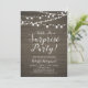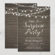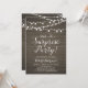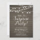 Celebre seu dia especial com este convite de festa surpresa rústica! Este design apresenta uma tipografia de script elegante e luzes em uma fundo de madeira rústica. Perfeito para uma festa no jardim, festa no celeiro ou qualquer festa surpresa.