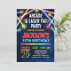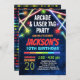 O arco-íris neon brilha cores jogos de arcade e convite de aniversário laser para rapazes e raparigas.