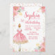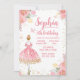 Convite de aniversário de bailarina dourada cor-de