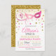 Torna-se um ótimo tema de festa de aniversário para CRIANÇAS OU ADULTOS (especialmente marcos como 16, 40, 50, etc) para festas de máscaras e glamour! O convite apresenta máscara de brilho e folha falsa e gráficos de confetes!