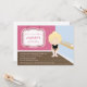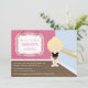 Este convite para festas de aniversario de meninas 5x7 tem um tema de bailarina doce. Esta tem uma bailarina loira de cabelos praticando em frente a um espelho no estúdio de dança de balés dela. À esquerda, há um quadro no qual você pode personalizar o nome da aniversariante junto com a idade dela. Na parte inferior, você pode personalizar o restante das informações de festa de aniversário. Alguns gráficos de Designs Zenware em MyGrafico.com