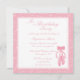 Este convite para festas de aniversário 5.25x5.25 tem um fundo de espiral rosa na moda elegante. Há um par de balés deslizantes na parte inferior direita do convite. O centro tem as suas informações personalizáveis de terceiros. Estúdio de Cacau
