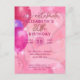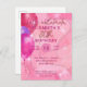 Convite de aniversário personalizado moderno e elegante com design de balões rosa quente, estrelas e brilhos em um fundo rosa abstrato.