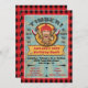 Ótimo para o cara másculo! Convite de festa de lenhador com um grande lenhador barbudo, machados, madeira cortada em um fundo de flanela. Ótimo para um aniversário, aposentadoria, solteirão, marco ou qualquer festa máscula. Ilustração desenhada à mão por McBooboo. Por favor, entre em contato comigo em tkatz@me.com com qualquer problema