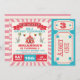 Procurando um convite de aniversário para uma garota? Esta design apresenta um bilhete de circo, uma tenda de circo e uma vedação. O esquema de cores consiste predominantemente em azul, vermelho e rosa. Eu queria criar um novo e sério convite de aniversário de circo para a loja porque é um tema muito amado de festa de aniversário e os convites são divertidos para design. O convite de aniversário de circo dessa garotinha está pronto para ser personalizado e é adequado para uma faixa de idades.