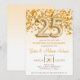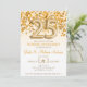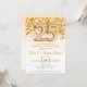 Este é um convite de festa de aniversário de bodas de 25 anos com tema de purpurina dourada e confetes. 25
