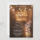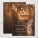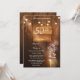 Incluso neste cartão de convite um fundo de madeira rústica decorado com luzes de corda brilhantes e um jarro simplesmente lindo cheio de flores frescas.