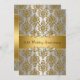 Convite de Aniversário. Damasco elegante dourado e prateado. Exclusivo Zazzle. Personalize com seus próprios detalhes. POR FAVOR, OBSERVE que todas as imagens planas! Elas NÃO têm Diamantes ou Joias reais!!
