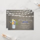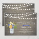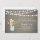 Celebre o seu dia especial com este convite de aniversário de casamento elegante. Este design apresenta um lindo buquê de flores com um jarro de pedras e luzes de corda em um fundo de madeira rústica.