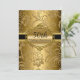 Convite de Aniversário. Padrão floral dourado e preto com laço de joia. Exclusivo Zazzle. Personalize com seus próprios detalhes. POR FAVOR, OBSERVE que todas as imagens são planas! Elas NÃO contêm Diamantes ou Joias reais!!
