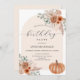 Comemore em estilo com este Convite de aniversário de Pumpkin Boho Fall. Com abóboras rústicas de aquarelas, flores de outono e sotaques de boho, este design elegante é perfeito para a celebração de aniversário de uma mulher, festa de outono jante ou reunião sazonal. Personalize com os detalhes do seu partido um convite exclusivo e na moda que define o tom para o seu evento especial. Ideal para aniversários de marco, temas de boho rústicos e festas inspiradas no outono.
