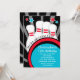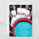 Comece a festa de boliche com a convite de aniversário azul retrô para uma festa de aniversário de menino ou menina. Nosso convite para boliches bonitinho apresenta pinks de boliche em fundo preto e cinza com estrelas vermelhas e azuis... super fofo com uma coordenação de volta. Apenas personalize com sua informação e você está pronto para ir! Itens correspondentes, incluindo selos de postagem de aniversário, adesivos de favoritos, cartões de agradecimento e obrigado que você também está disponível em nosso compro. ©Babystar Designs