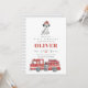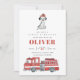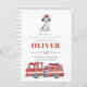 Adorável bombeiro, o convite de aniversário com caminhão e cão.