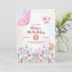 Convite de Aniversário de Borboleta em Aquarela para 9 Anos | Modelo Digital Editável de Jardim Floral Rosa Roxo | Convite de Festa para Menina de Nove Anos em Tons Pastéis Suaves de Primavera
