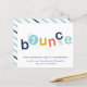 Este convite de aniversário bounce apresenta letras saltitantes em azul-marinho, aqua, amarelo e laranja com a idade editável no O.