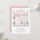 Convide seus convidados para uma celebração encantadora com este convite temático de café parisiense! Com uma encantadora ilustração em aquarela de uma fachada de padaria francesa vintage, completa com flores cor-de-rosa suaves, pastelarias delicadas na janela e uma configuração de mesa de café aconchegante, este design é perfeito para criar um evento memorável e elegante.