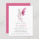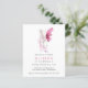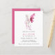 Convite de bolsa mensageifesta de aniversario elegante favorável ao orçamento com uma ilustração aquosa de calçados pontiagudos de balé rosa e simples tipografia rosa e cinza.