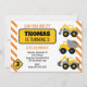 Festa Em Construção! Este convite de festas de construção apresenta caminhões de construção e cartazes de estrada para colocar a cena perfeitamente para a festa de aniversário do caminhão de construção.