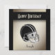 Convite divertido com um capacete de futebol. Um fundo de gradiente dourado adiciona um ar de masculinidade. Marquee com as palavras feliz aniversário pode ser mudado. Adicione os nomes, a data e os detalhes. Um belo convite que pode ser facilmente personalizado para muitas ocasiões especiais e comemorações de marcos felizes — o texto pode ser usado para qualquer evento, incluindo festa de aniversário, festa de aniversário, casamento, salvar a data, caso exclusivo ou evento.