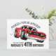 Prepare-se para uma viagem emocionante! Nosso Convite de aniversário de Carro Race Vermelho vai acelerar o entusiasmo para a festa do seu filho. Com um carro rápido e uma bandeira marcada, este convite moderno e ousado é perfeito para crianças que precisam de diversão em quatro velocidades. Que comece a corrida!