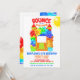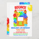 Este Convite de Aniversário de Casa de Saltos é ótimo para quem celebra com uma festa saltitante! O design de balões e casa de saltos apresenta uma variedade de cores primárias e é perfeito para meninos e meninas! Convide seus convidados para saltar e se divertir!