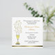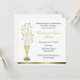 Elegante convite de aniversário de casamento, feito com cartão branco reciclado, texto preto e destaques em dourado. Um copo de champanhe, com um laço dourado doce no caule, tem estrelas cintilantes saindo do topo do copo, e uma faixa em tom dourado na parte inferior finaliza este convite elegante pronto para você personalizar para a sua festa. Se preferir excluir o texto para o RSVP, você pode fazê-lo. Cartões de resposta RSVP correspondentes estão disponíveis.