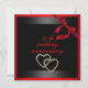 Convite de aniversário de casamento Coração Preto & Vermelho elegante