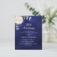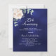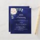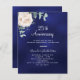 Um fundo azul marinho, incolor. Decorado com uma flor branca, uma flor de pénia e um eucalipto verde de cor aquosa. Personalize e adicione seus nomes e detalhes. 1 folha = 1 convite impresso de borda a borda.