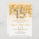 Este é um convite de aniversário de casamento de 15 anos com tema de glitter dourado e confete. 15