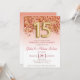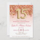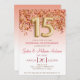 Este é um convite de festa de aniversário de casamento de 15 anos temático com glitter e confetes dourados e borgonha. 15
