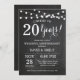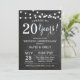 Convite de Aniversário de Casamento de 20 Anos. Fundo de Quadro Negro. Luzes de Corda. Preto e Branco. 1º, 2º, 3º, 4º, 5º, 10º, 15º, 20º, 25º, 30º, 35º, 40º, 45º, 50º, 55º, 60º, 65º, 70º, 75º, 80º, Qualquer Ano. Aniversário Adulto. Festa de Aniversário de Homem ou Mulher. Para personalização adicional, clique no botão "Personalizar" e use nossa ferramenta de design para modificar este modelo.