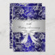Convite de Aniversário. Floral prateado e azul com laço de jóia branca. Exclusivo Zazzle. Personalize com seus próprios detalhes. POR FAVOR, OBSERVE que todas as imagens são planas! Elas NÃO têm laços, diamantes ou jóias reais!!