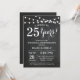 Convite de Aniversário de Casamento de 25 Anos. Fundo de Quadro Negro. Luzes de Corda. Preto e Branco. 1º, 2º, 3º, 4º, 5º, 10º, 15º, 20º, 25º, 30º, 35º, 40º, 45º, 50º, 55º, 60º, 65º, 70º, 75º, 80º, Qualquer Ano. Aniversário de Adulto. Festa de Aniversário de Homem ou Mulher. Para personalização adicional, clique no botão "Personalizar" e use nossa ferramenta de design para modificar este modelo.